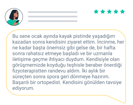 Ayrıca, DoktorTakvimi dışında randevu alan kullanıcılar tarafından bırakılan görüşlerimiz de bulunmaktadır. Bu görüşlerin, deneyimlerini paylaşmak isteyen tüm kullanıcılara ses vermek için harika bir fırsat olduğuna inanıyoruz. Bu görüşler de titiz kontrollere tabi tutulmaktadır.